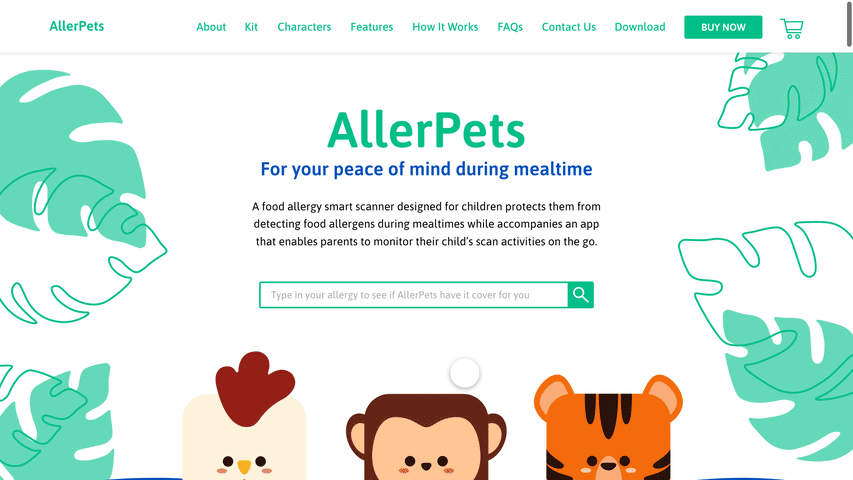 Before purchasing the device, users can see if their allergy is in our system. This makes sure that the user is suited to use the device. The colours and animations also reflect the fun and playfulness we want the viewers to feel. This draws the attention of the children, which will encourage them to use the device.