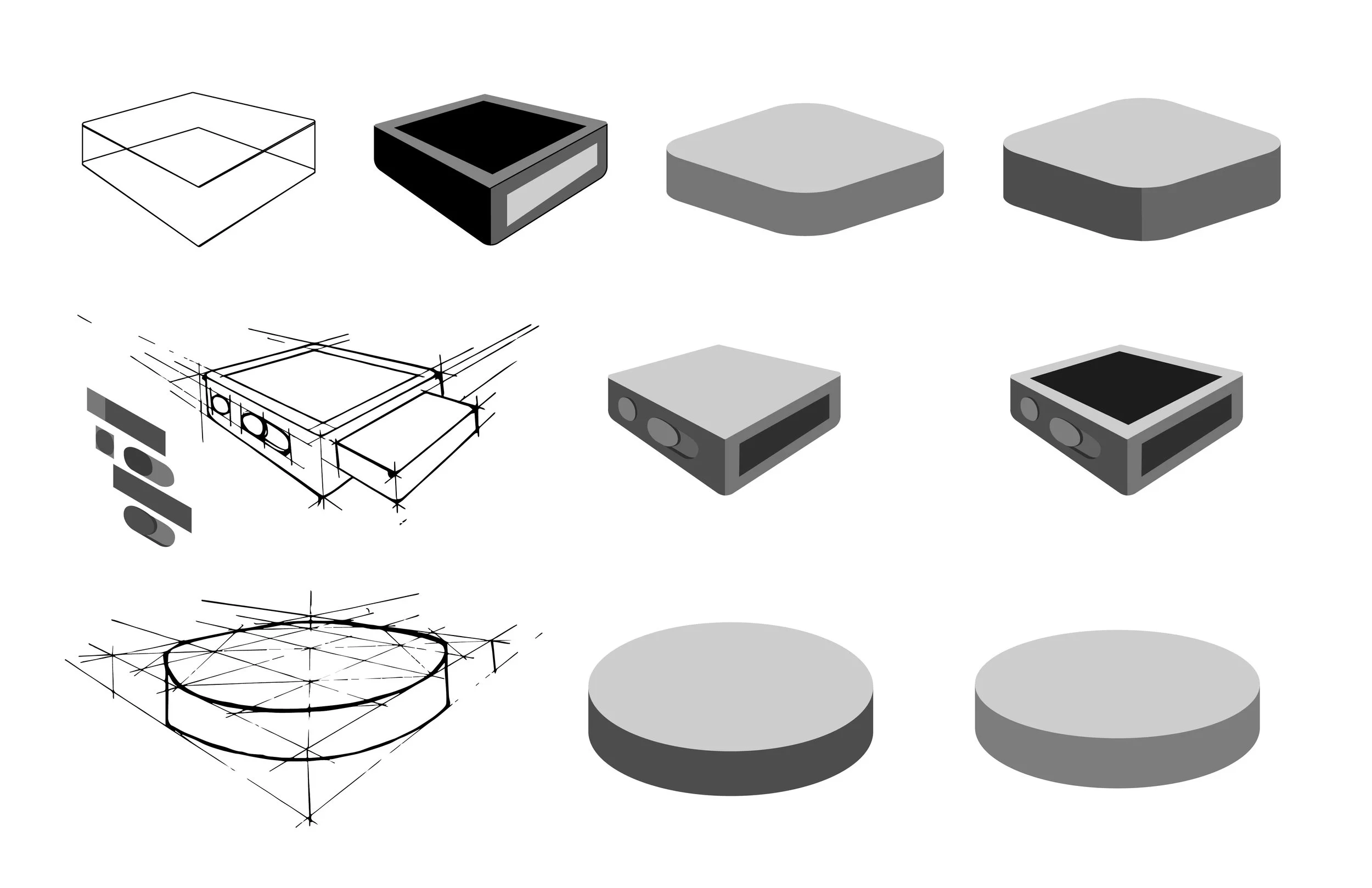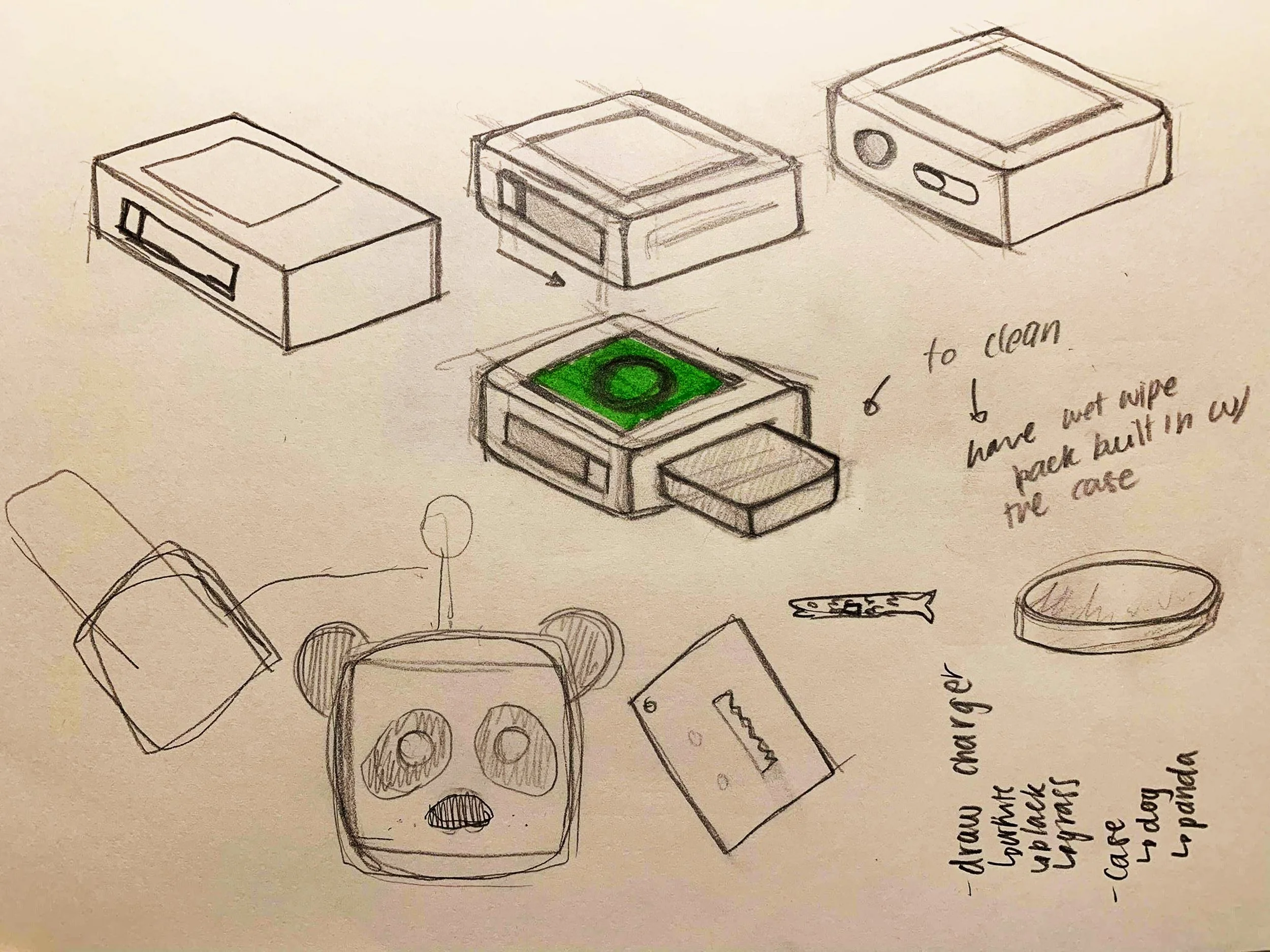 We started the ideation process by developing different concepts of how we envisioned the physical product while simultaneously solving the challenges we stumbled upon through multiple iterations of sketches and digital renderings.