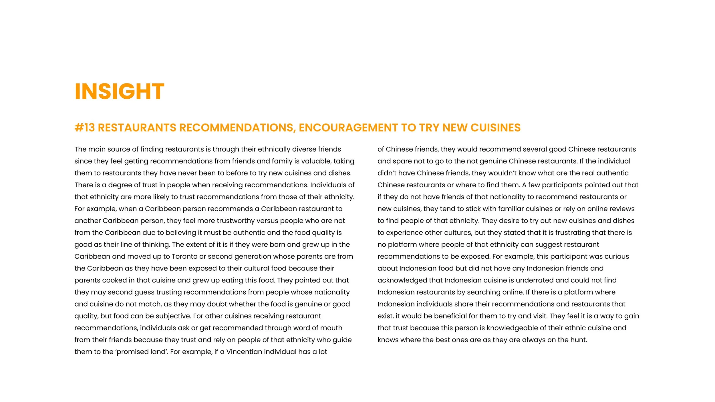 Throughout my secondary research initially, I aimed to emphasize the evident reasons why it is crucial to increase exposure to these mom-and-pop-owned restaurant establishments, as well as bring greater visibility to the underrepresented cuisines. These are the following reasons: