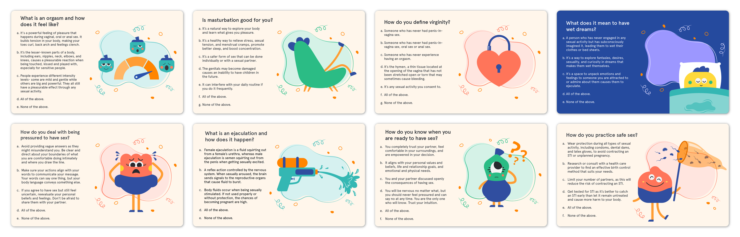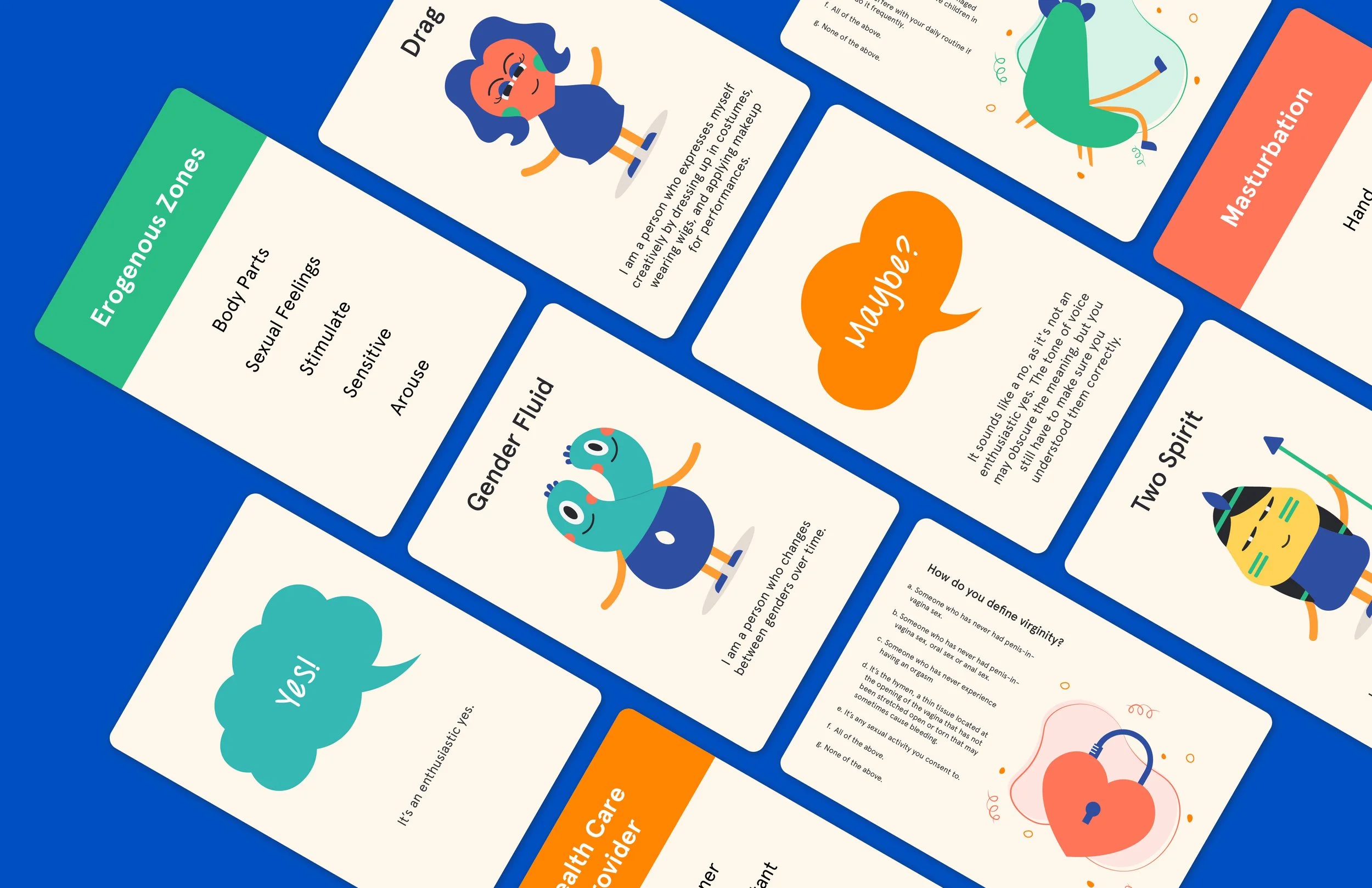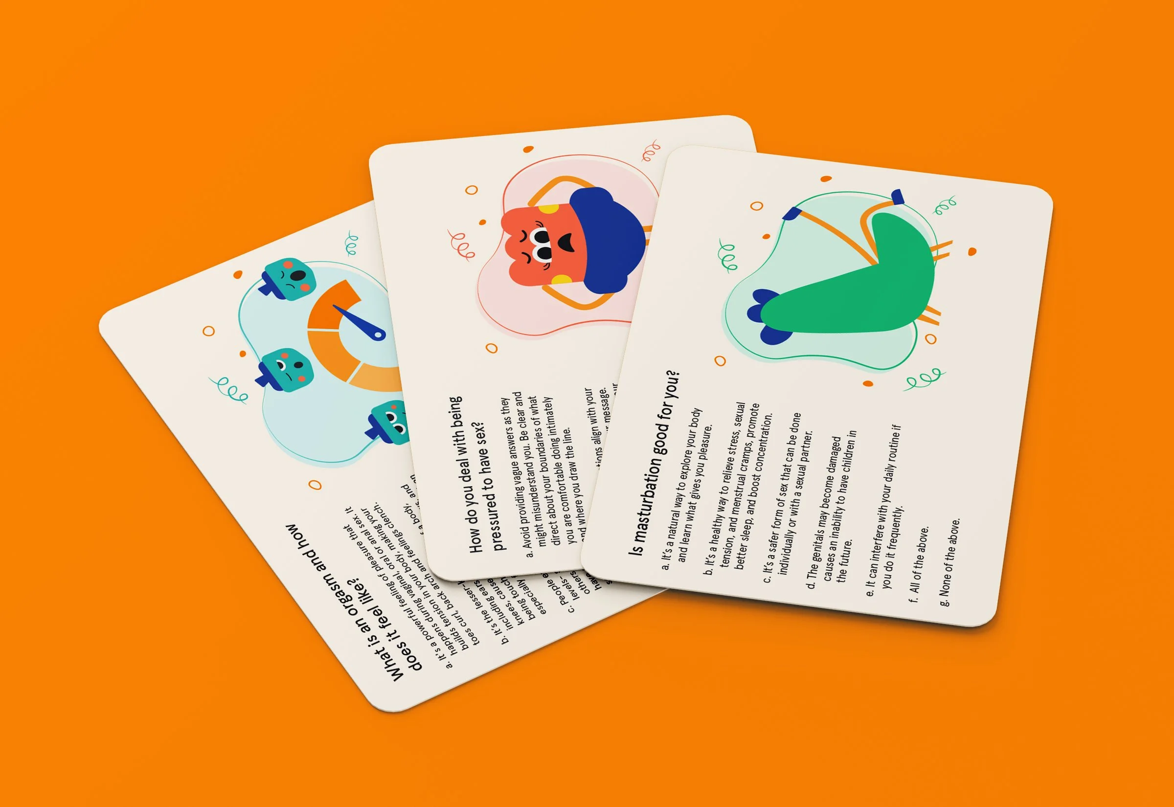 The playful illustrations help reduce the serious tone of the topic as discussing sexual health can be sensitive and heavy. Therefore, presenting the card game application appears more light-hearted and approachable.