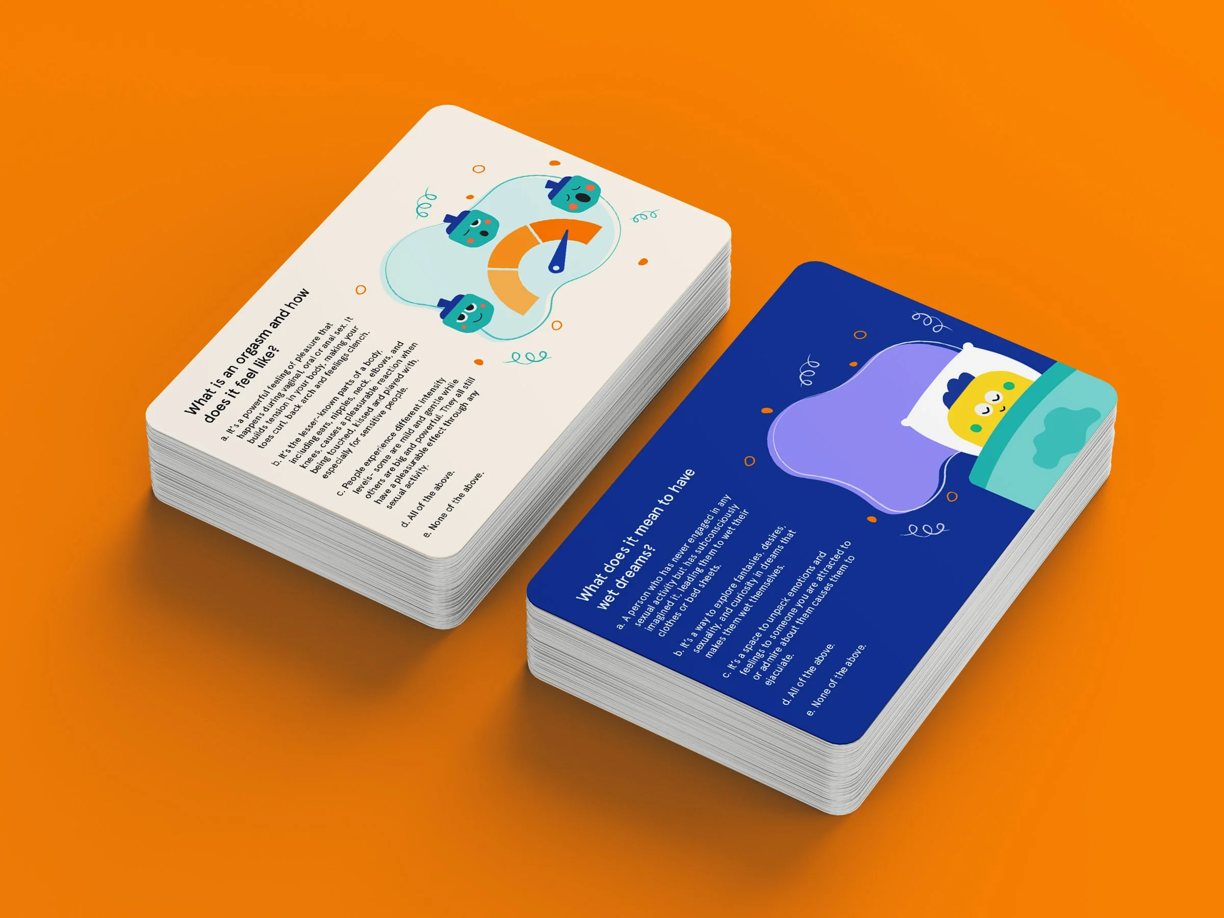 Despite preteens' curiosity about sex, pleasure, intimacy, relationships, and anything else related to sexual health, many of them are afraid to ask questions, or these topics are not addressed in sex education curriculums. The Cards Not Against Sexual Health consists of questions with pre-establish answers to facilitate open and honest dialogue.